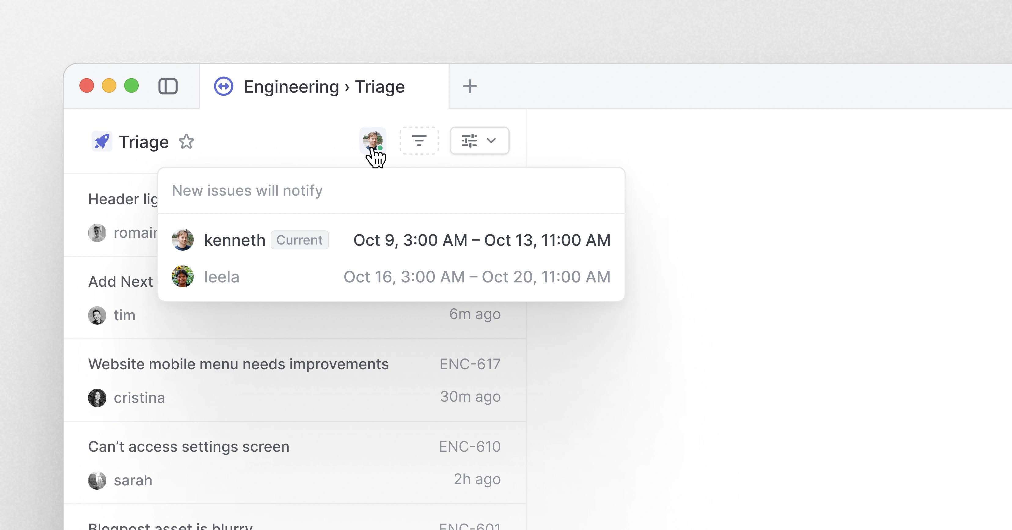 I joined Linear in August this year, and started fixing smaller bugs to familiarize myself with the codebase and product, dived into customer feedback. After a few weeks, I restarted the triage responsibility project and we quickly rolled the feature out to a smaller set of beta customers.